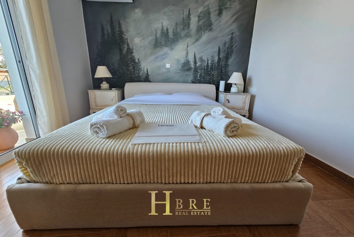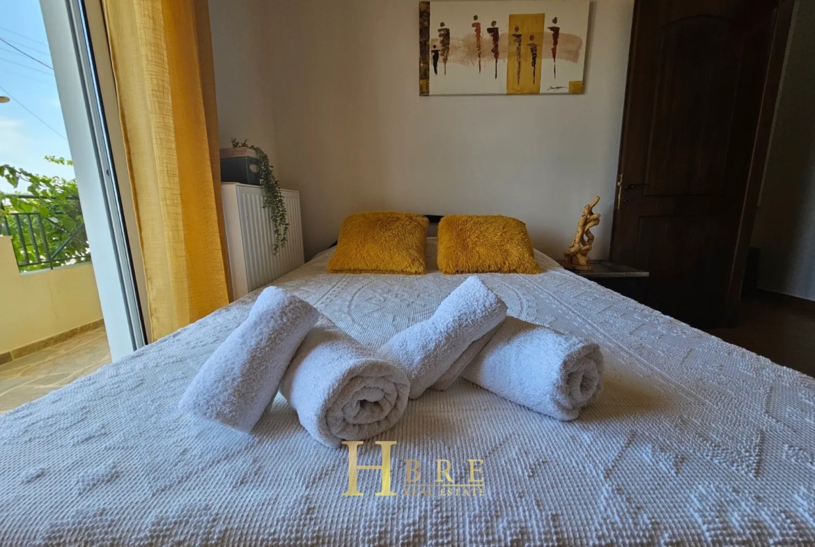 Αποτελείται από ευρύχωρο ενιαίο σαλόνι με κουζίνα, με χώρο τραπεζαρίας, 2 υπνοδωμάτια, 1 μπάνιο, ενώ ξεχωρίζει για τη μεγάλη του βεράντα με απεριόριστη θέα στη θάλασσα.