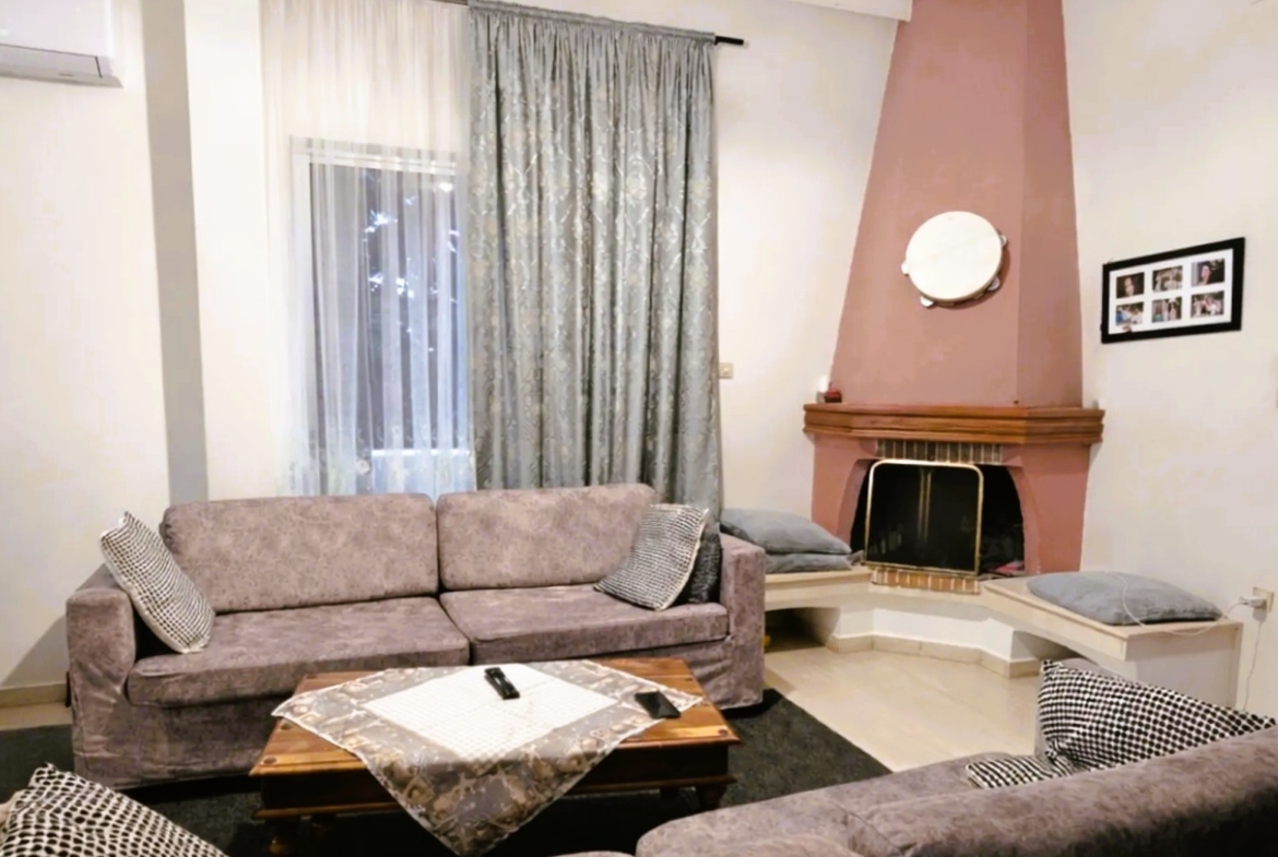 Στο εσωτερικό διαθέτει ευρύχωρο σαλόνι με τζάκι, μεγάλη και πρακτική κουζίνα, 4 υπνοδωμάτια και 3 μπάνια, καλύπτοντας ιδανικά τις ανάγκες μιας οικογένειας. Οι μεγάλες βεράντες με τέντες προσφέρουν επιπλέον χώρους χαλάρωσης και φιλοξενίας, με ευχάριστη θέα στον περιβάλλοντα χώρο.