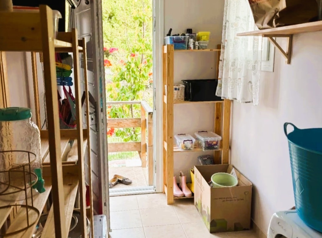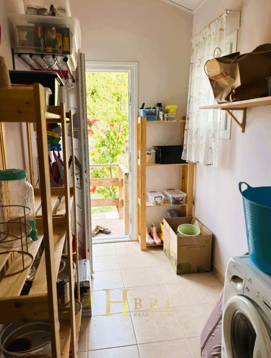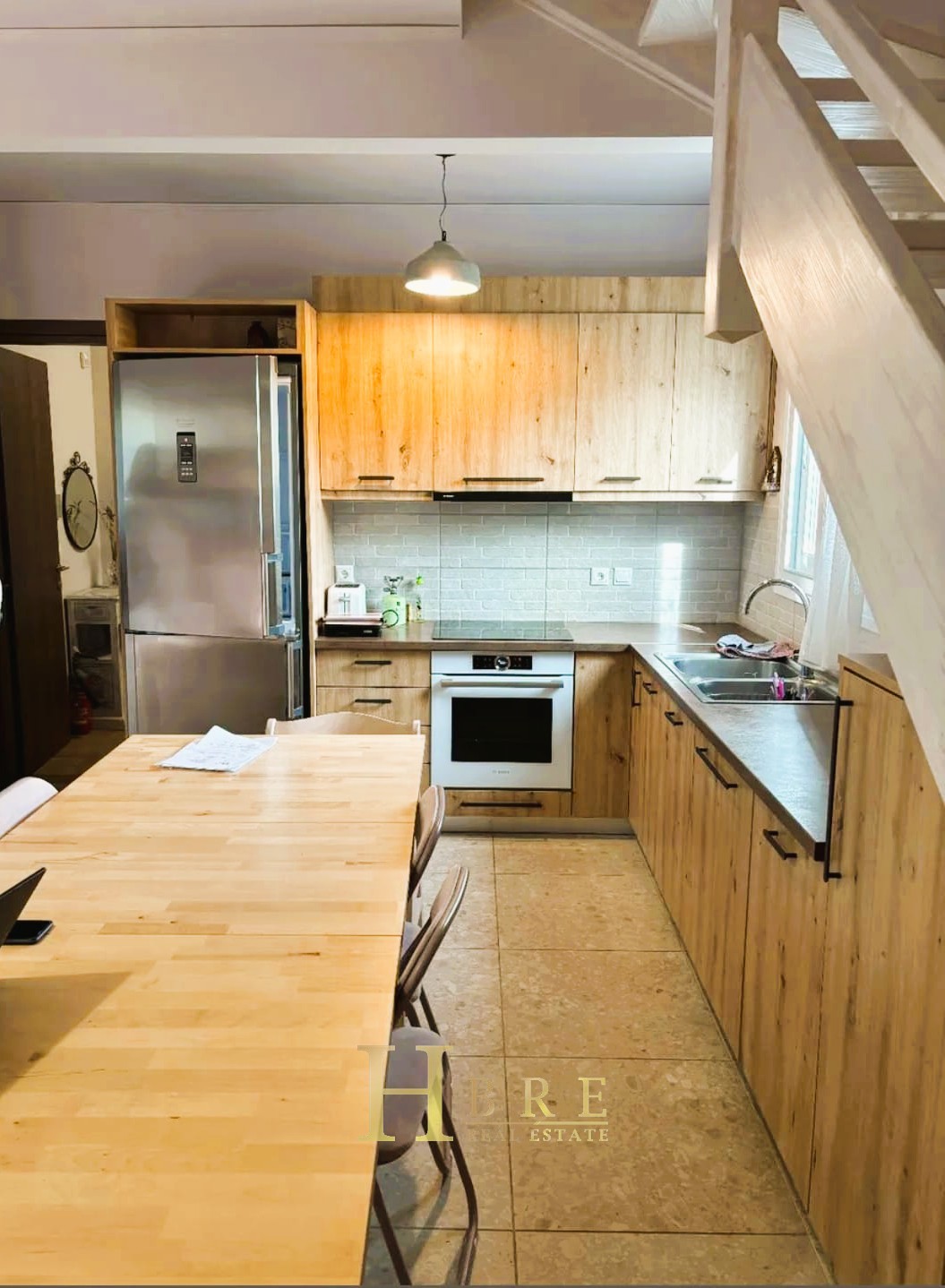 Το ισόγειο διαθέτει ενιαίο χώρο κουζίνας, σαλονιού και τραπεζαρίας, και 1 υπνοδωμάτιο, ενώ στον πρώτο όροφο βρίσκονται 2 υπνοδωμάτια και 1 πλήρες μπάνιο. Η κατοικία διαθέτει επίσης αποθήκη 35τ.μ., χώρο στάθμευσης, καθώς και κήπο 100τ.μ. για στιγμές χαλάρωσης και ψυχαγωγίας.