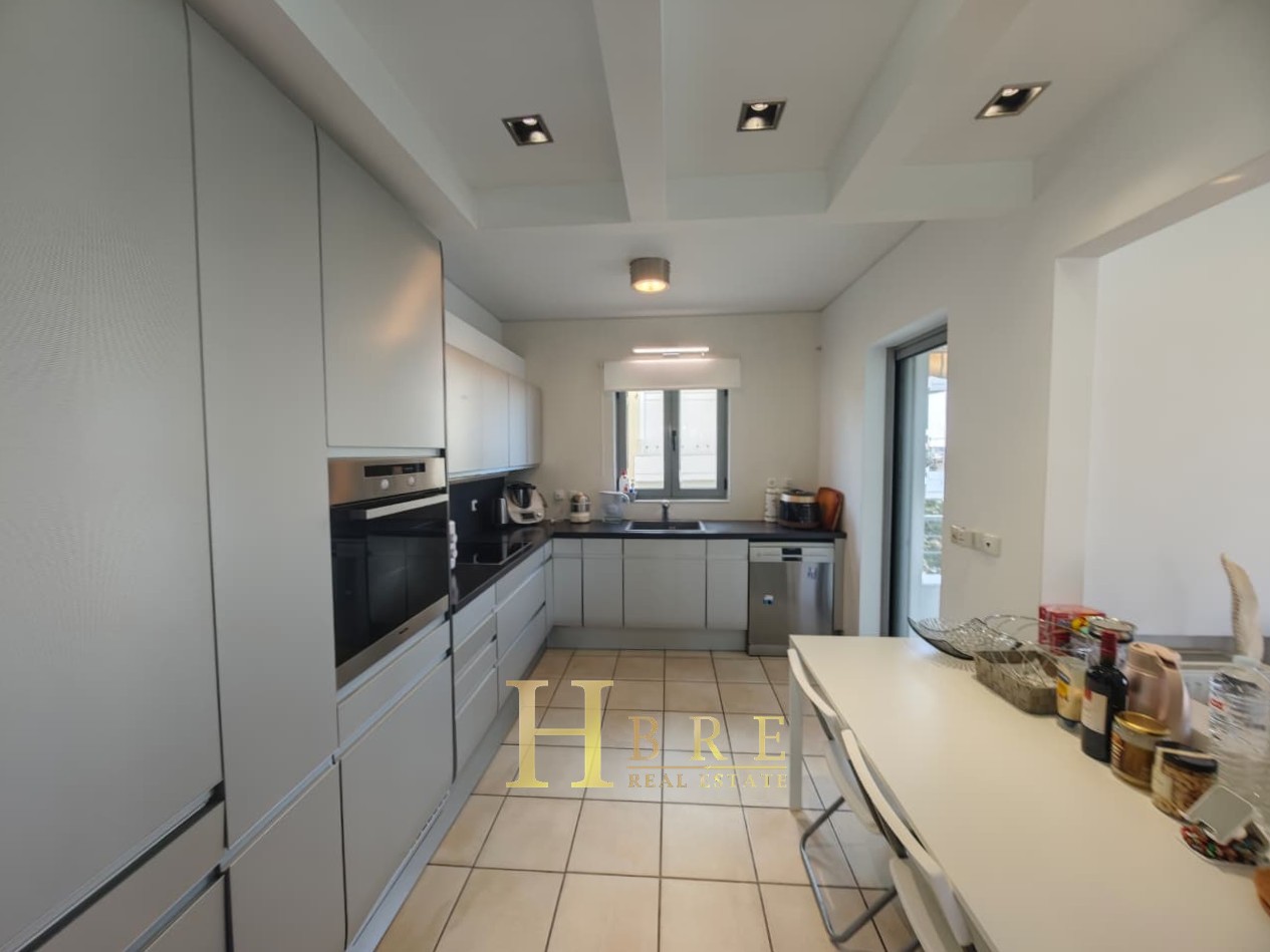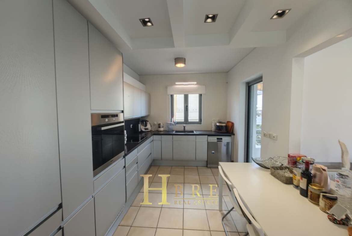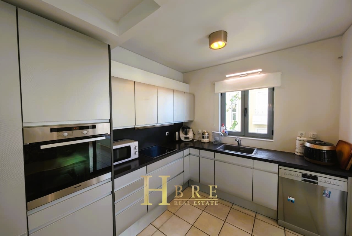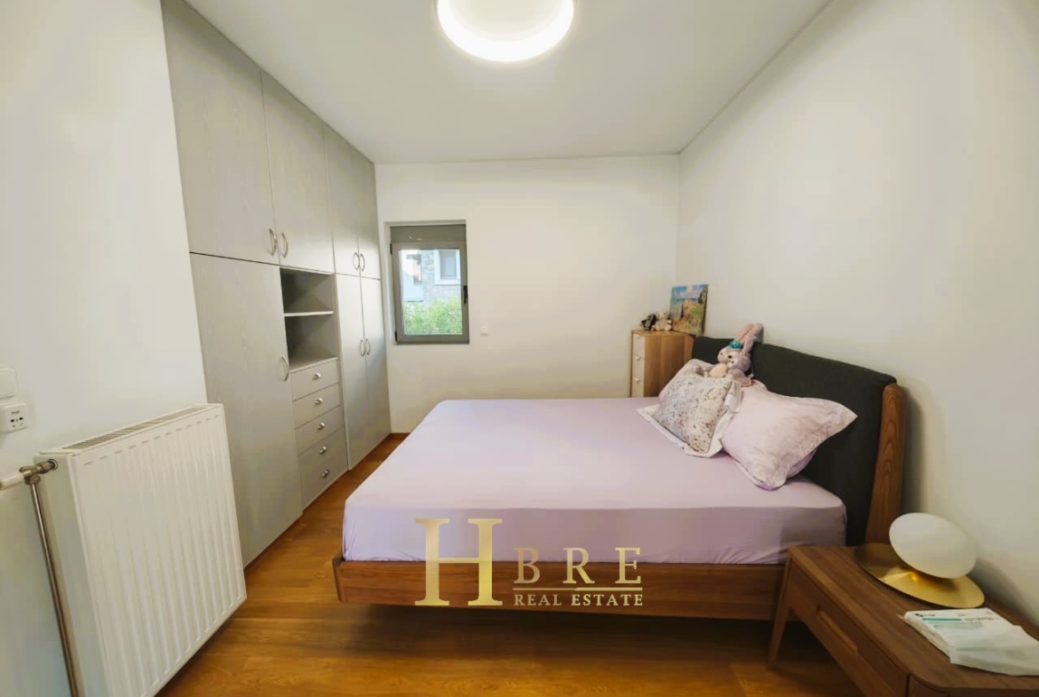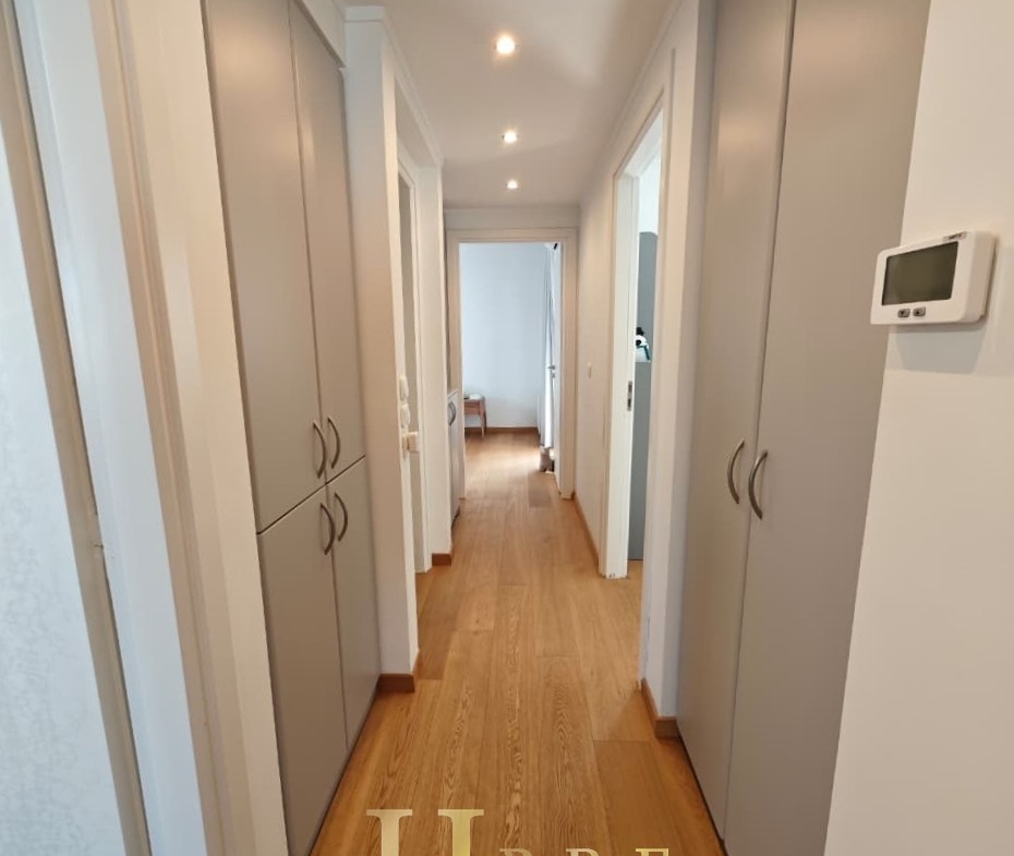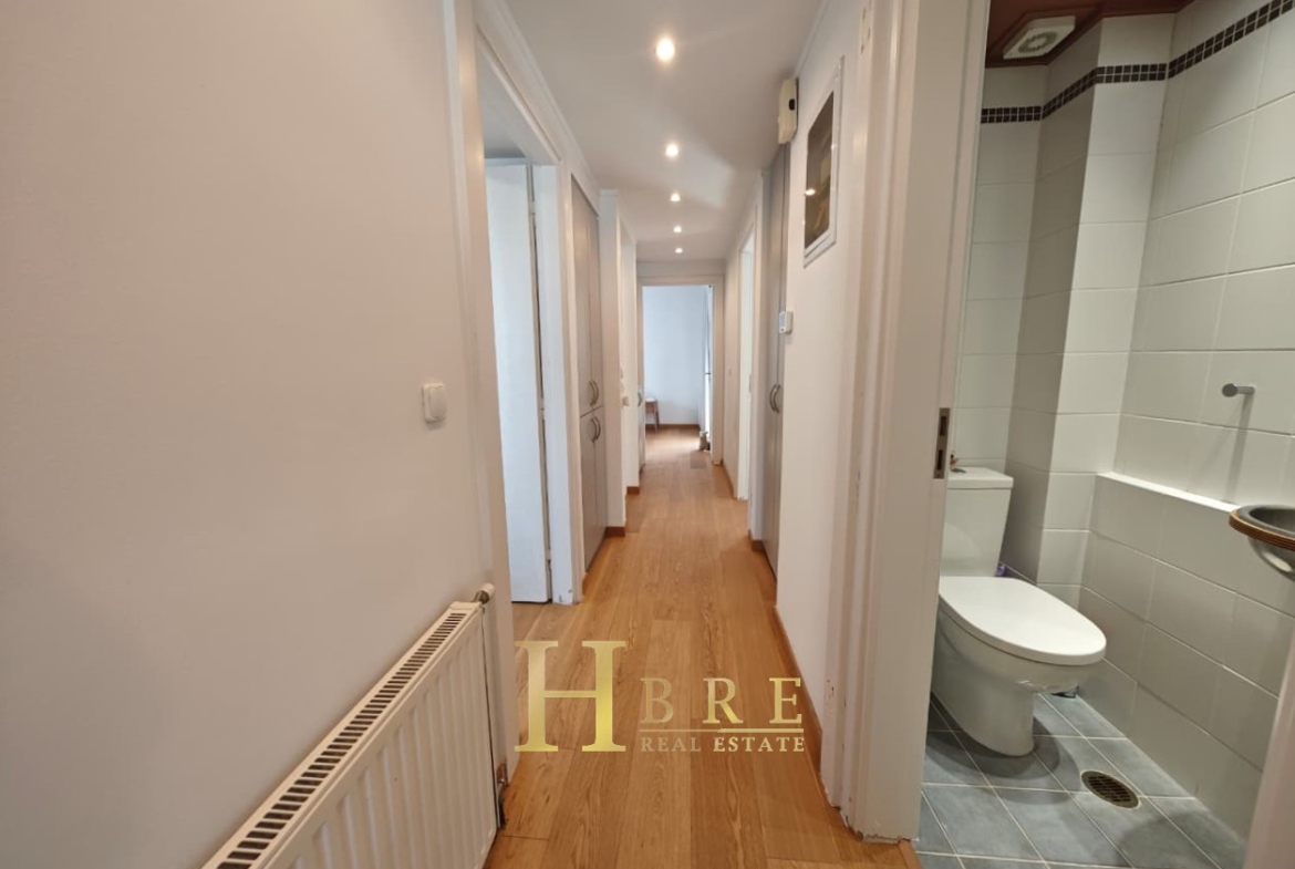 Ο χώρος υποδοχής είναι ιδιαίτερα ευρύχωρος και φωτεινός, με άνετο σαλόνι που διαθέτει τζάκι και ξεχωριστό χώρο τραπεζαρίας, ιδανικό για καθημερινή διαβίωση αλλά και φιλοξενία. Η κουζίνα είναι μοντέρνα και πλήρως εξοπλισμένη, σχεδιασμένη με έμφαση στην εργονομία. Το διαμέρισμα περιλαμβάνει 3 άνετα υπνοδωμάτια, 1 πλήρες μπάνιο και 1 επιπλέον WC.