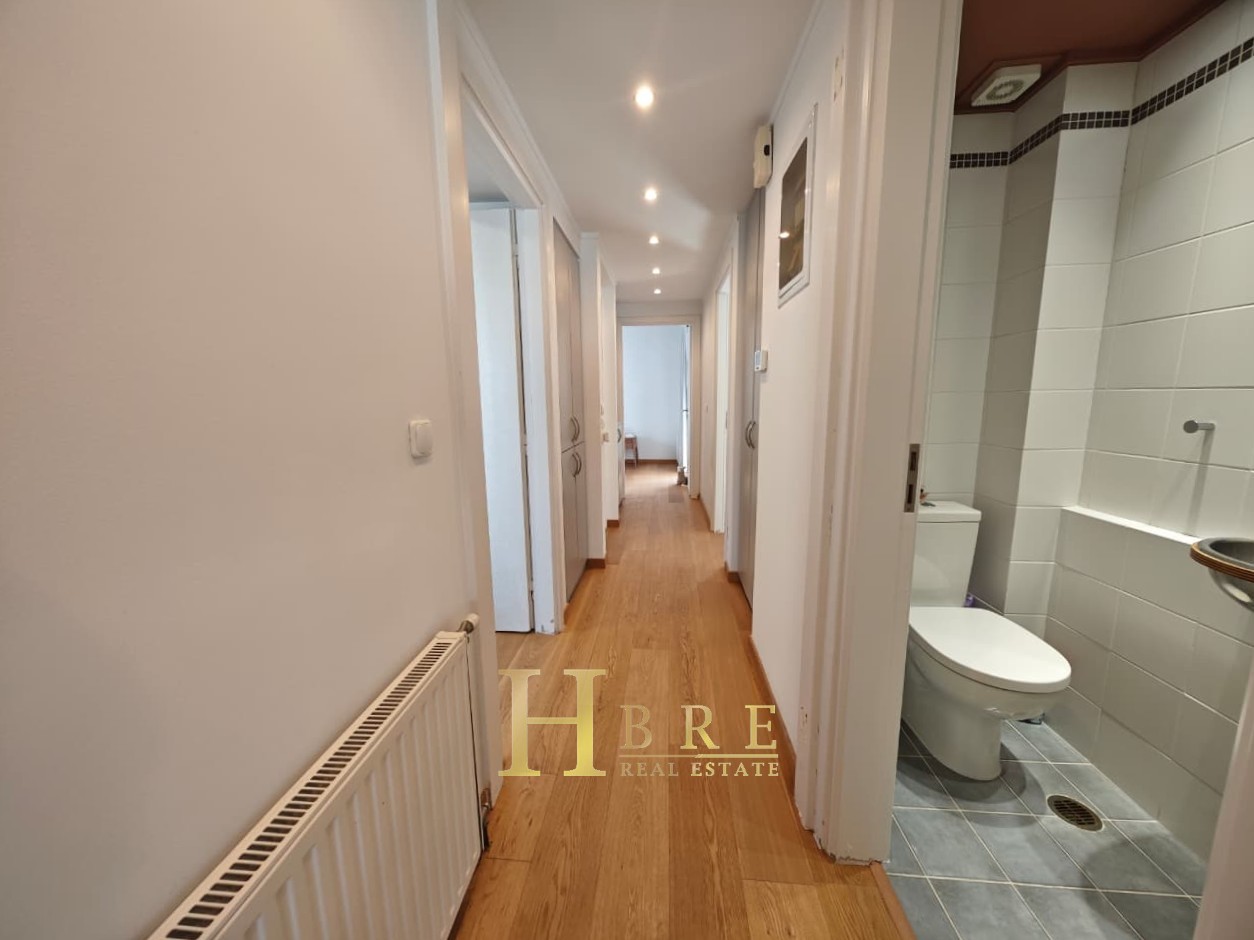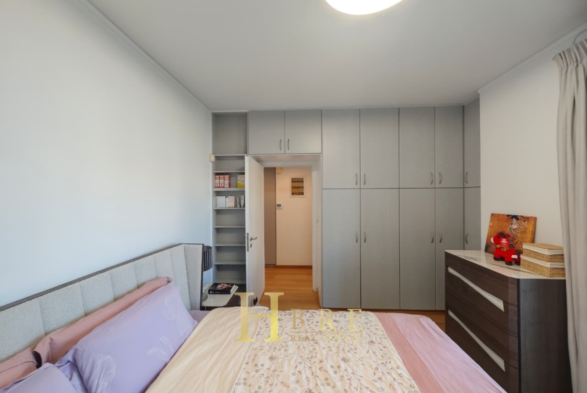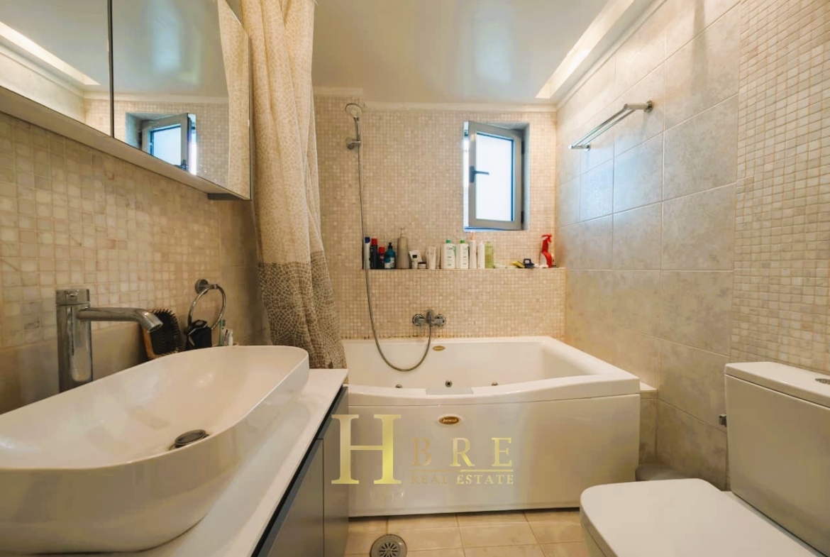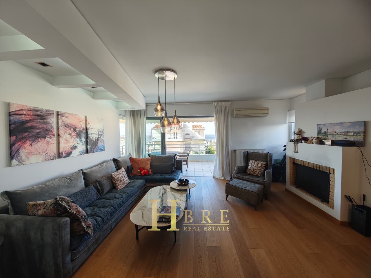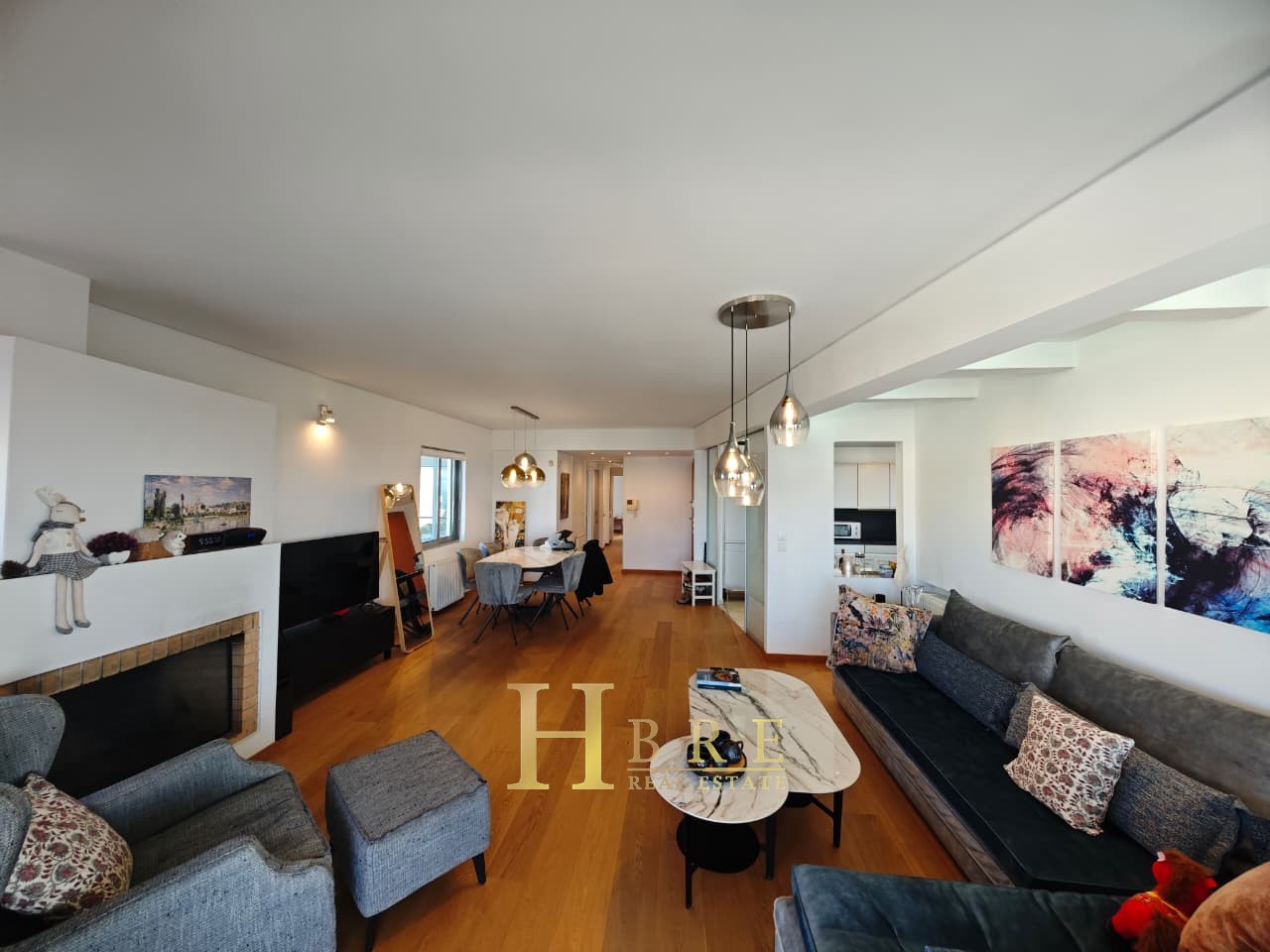 Ο χώρος υποδοχής είναι ιδιαίτερα ευρύχωρος και φωτεινός, με άνετο σαλόνι που διαθέτει τζάκι και ξεχωριστό χώρο τραπεζαρίας, ιδανικό για καθημερινή διαβίωση αλλά και φιλοξενία. Η κουζίνα είναι μοντέρνα και πλήρως εξοπλισμένη, σχεδιασμένη με έμφαση στην εργονομία. Το διαμέρισμα περιλαμβάνει 3 άνετα υπνοδωμάτια, 1 πλήρες μπάνιο και 1 επιπλέον WC.
