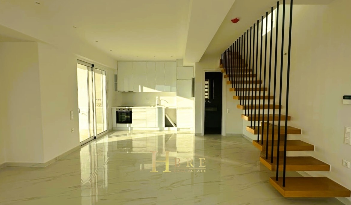 Νεόδμητη μεζονέτα minimal αισθητικής, συνολικής επιφάνειας 114 τ.μ., καταλαμβάνει τον 6ο και 7ο όροφο σύγχρονου κτιρίου στο Παλαιό Φάληρο και προσφέρει άνεση, λειτουργικότητα και υψηλή ποιότητα κατασκευής.