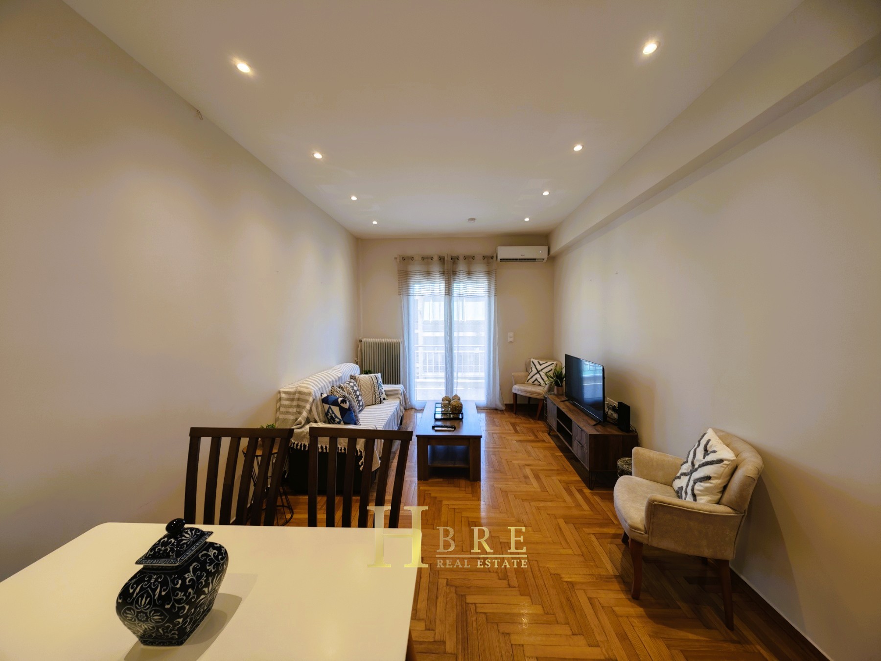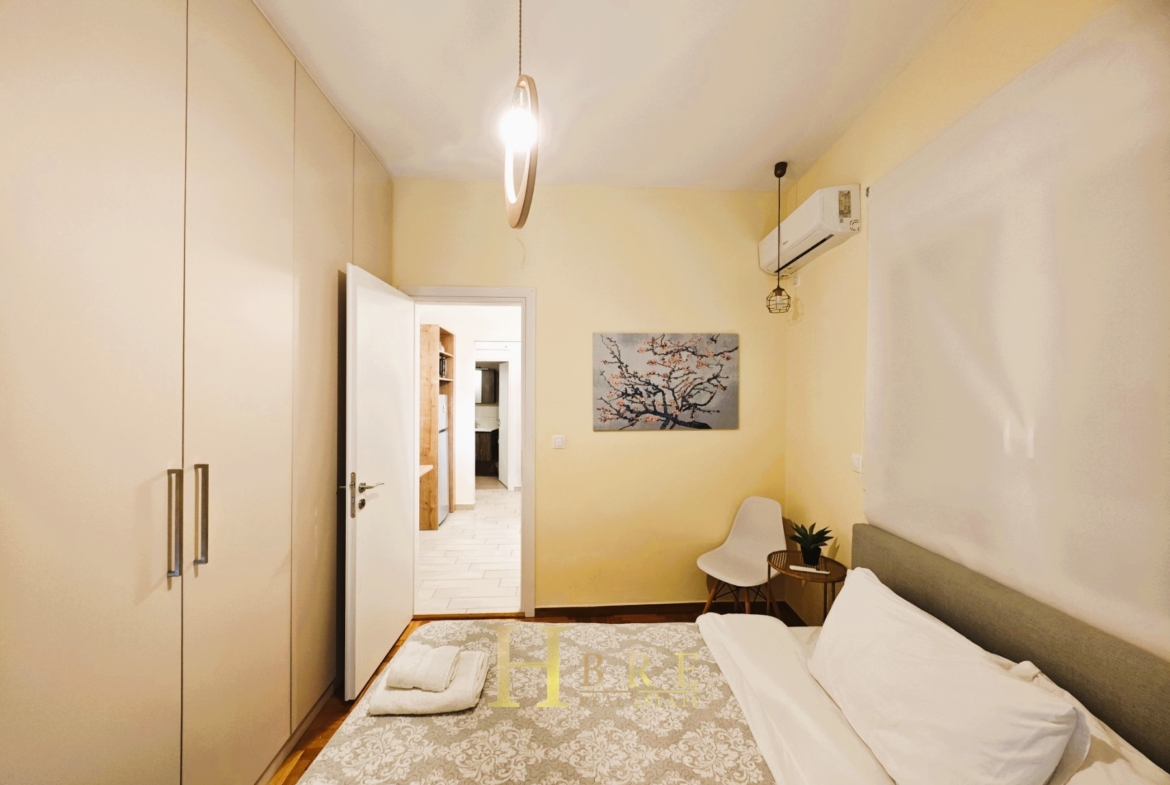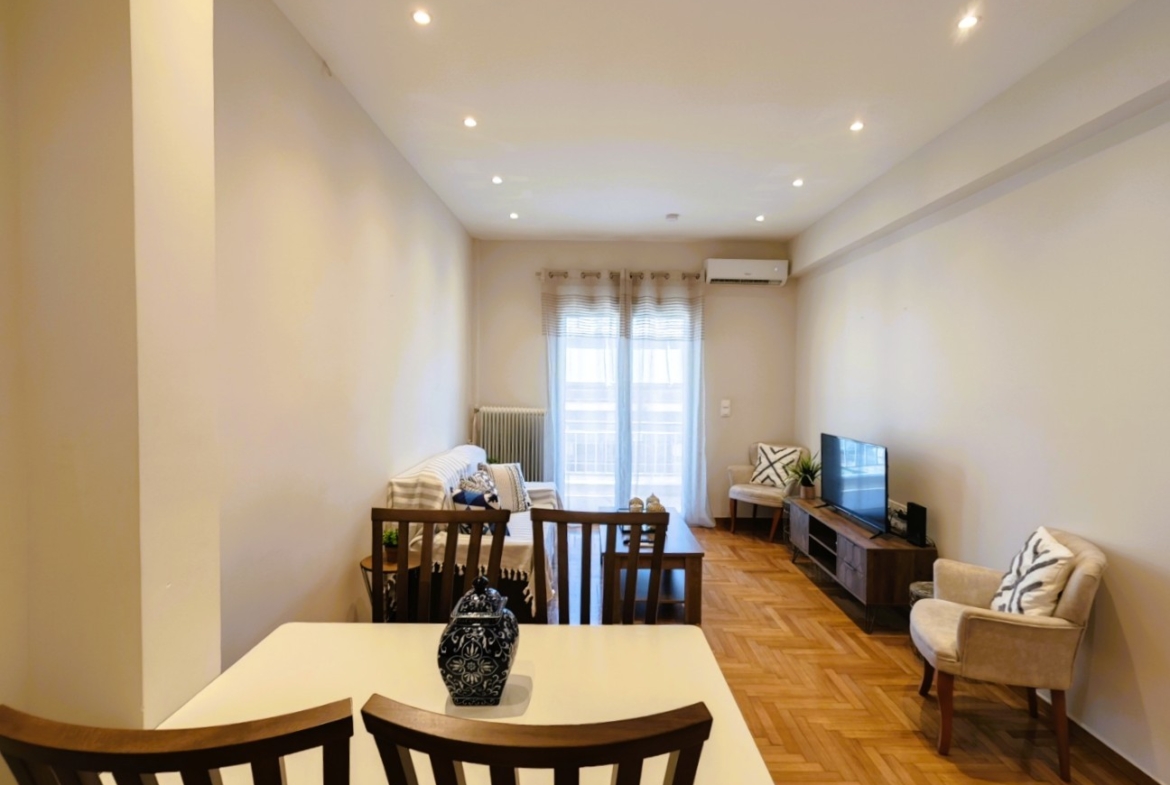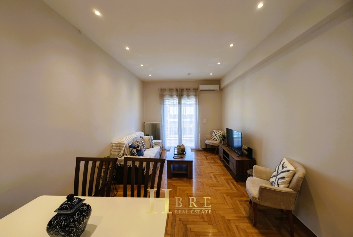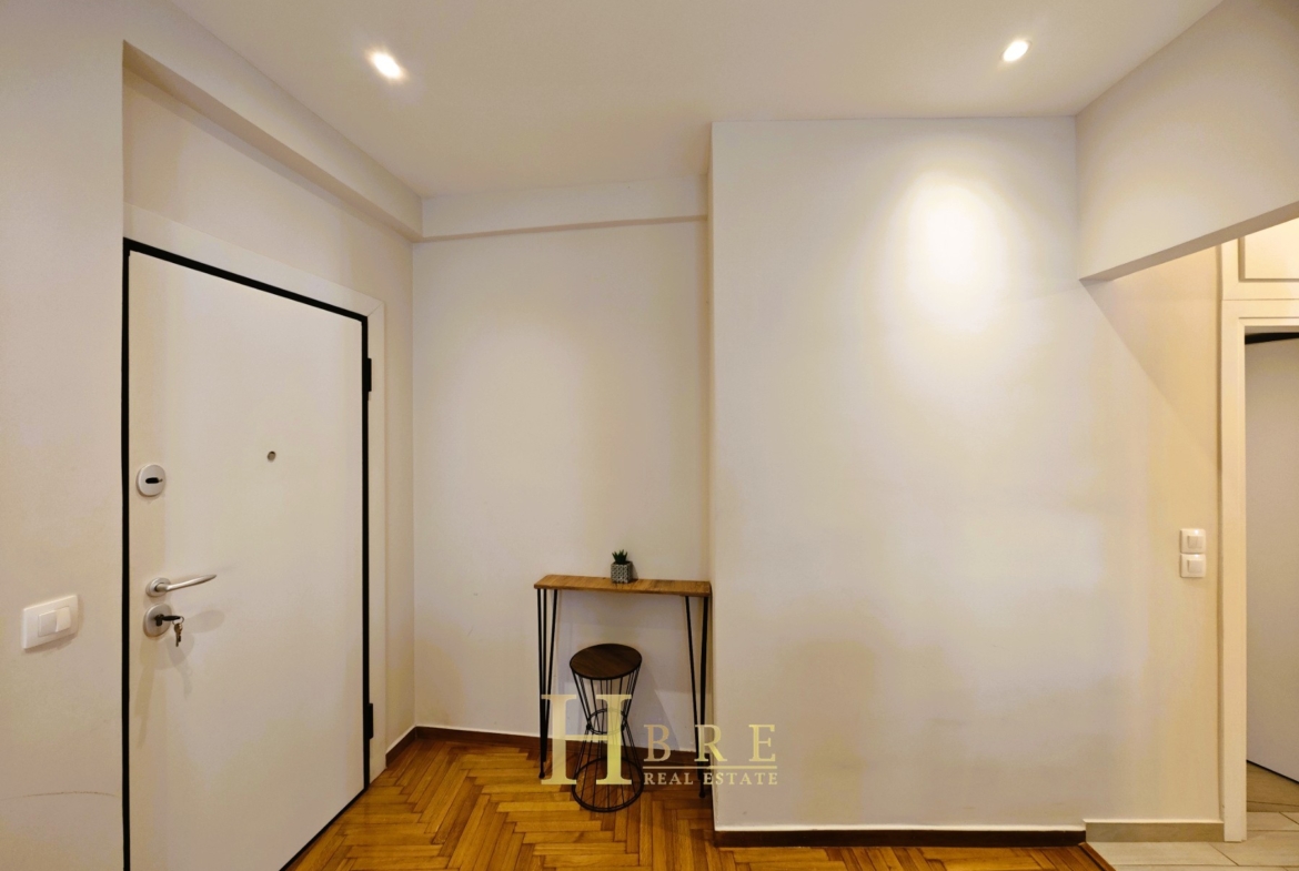 Η ανακαίνιση έχει πραγματοποιηθεί με ιδιαίτερη έμφαση στην ποιότητα και τη λειτουργικότητα, περιλαμβάνοντας δρύινα δάπεδα, ενεργειακά κουφώματα αλουμινίου με διπλά τζάμια και σίτες, πόρτα ασφαλείας, κλιματισμό, καθώς και σποτ φωτισμό που αναδεικνύει τον σύγχρονο χαρακτήρα του διαμερίσματος. Η πολυκατοικία διαθέτει ασανσέρ για άνετη πρόσβαση.