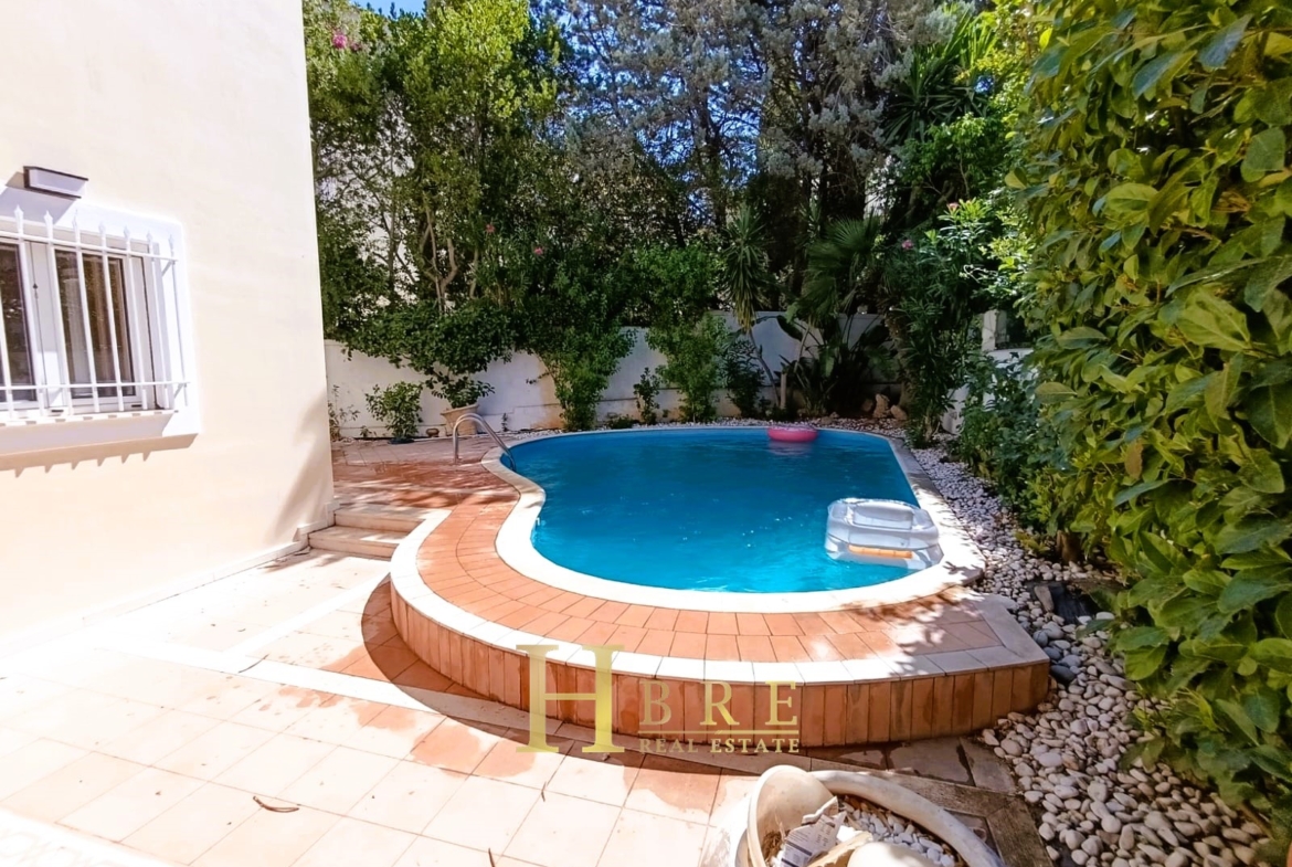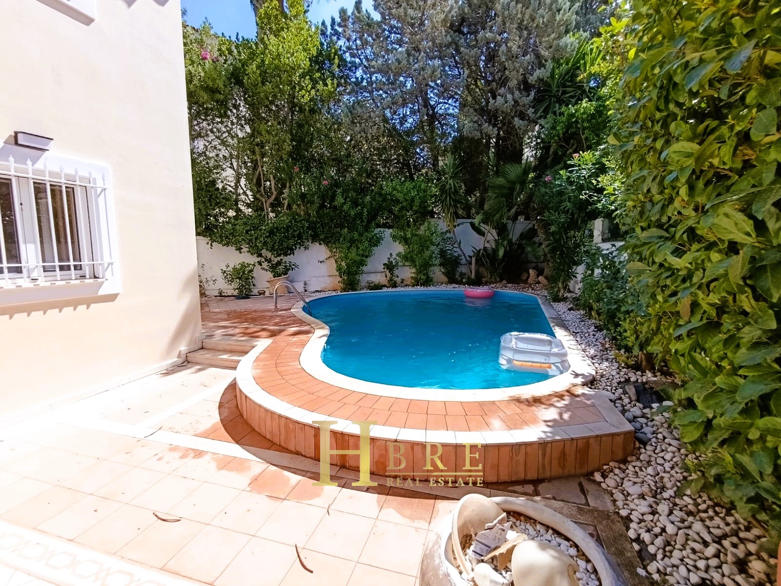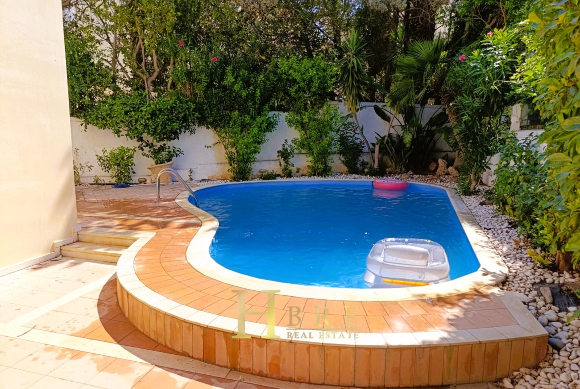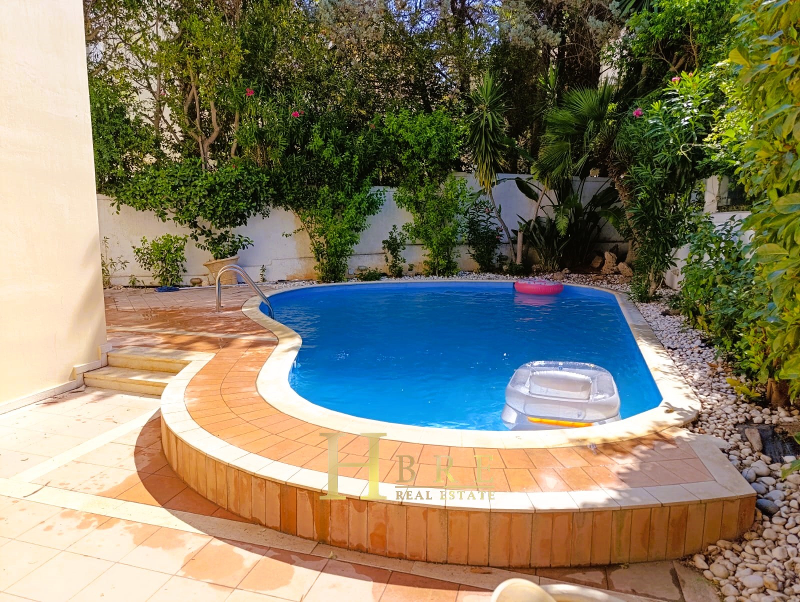 The outdoor area features a private swimming pool of 32 sq.m., ideal for relaxing and entertaining during the summer months.