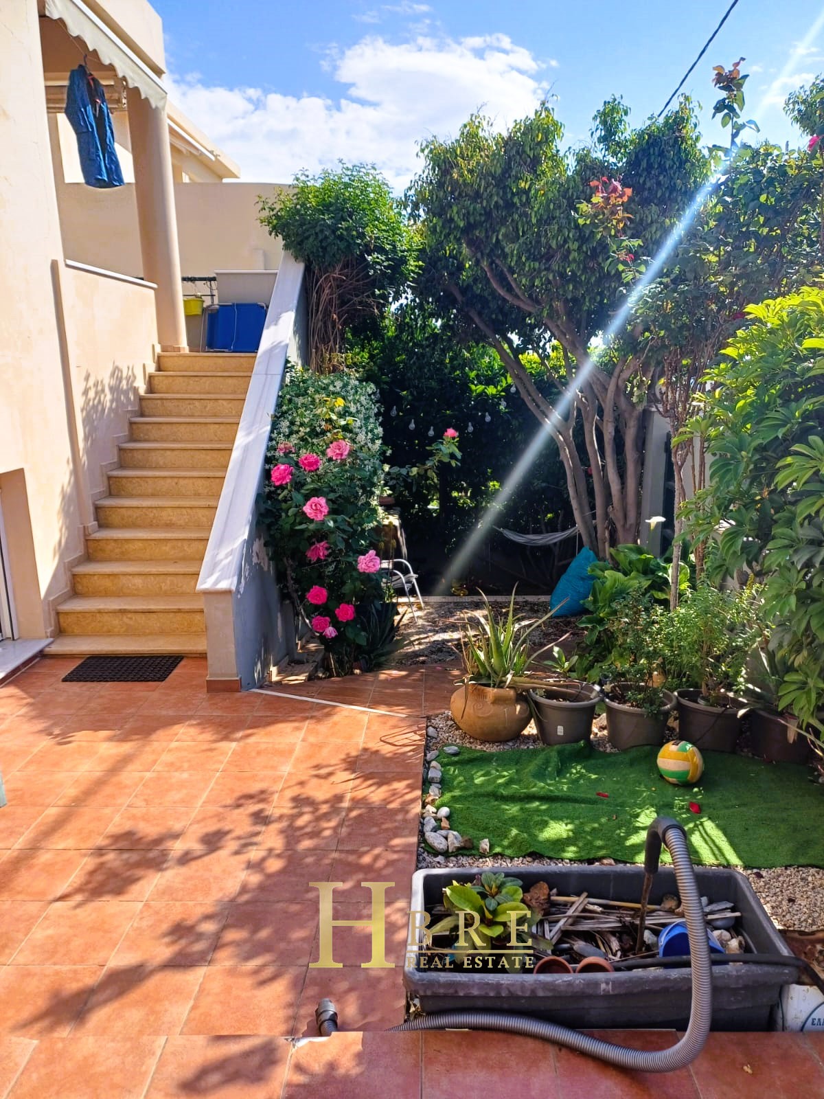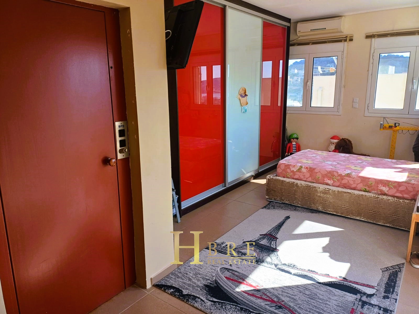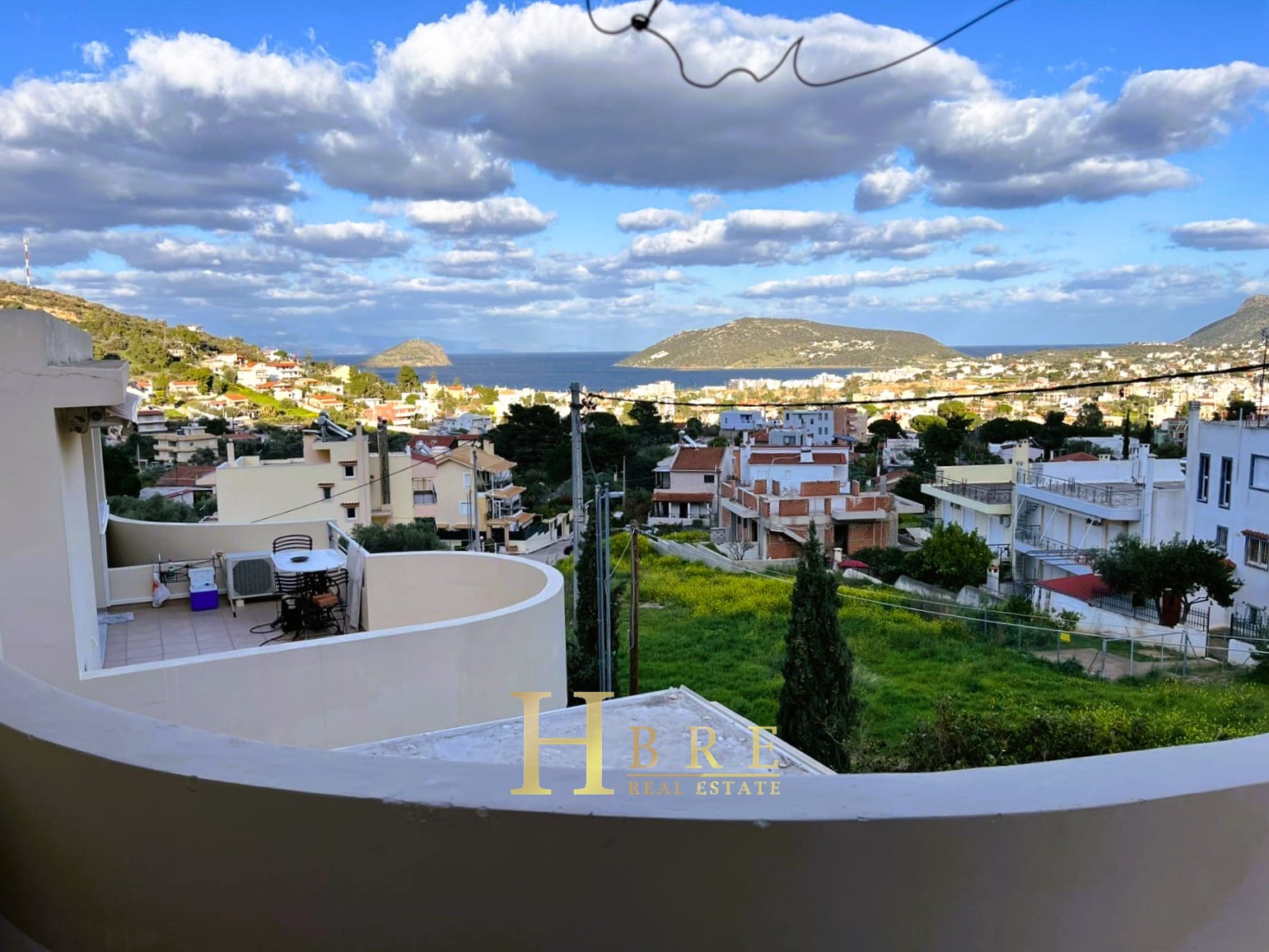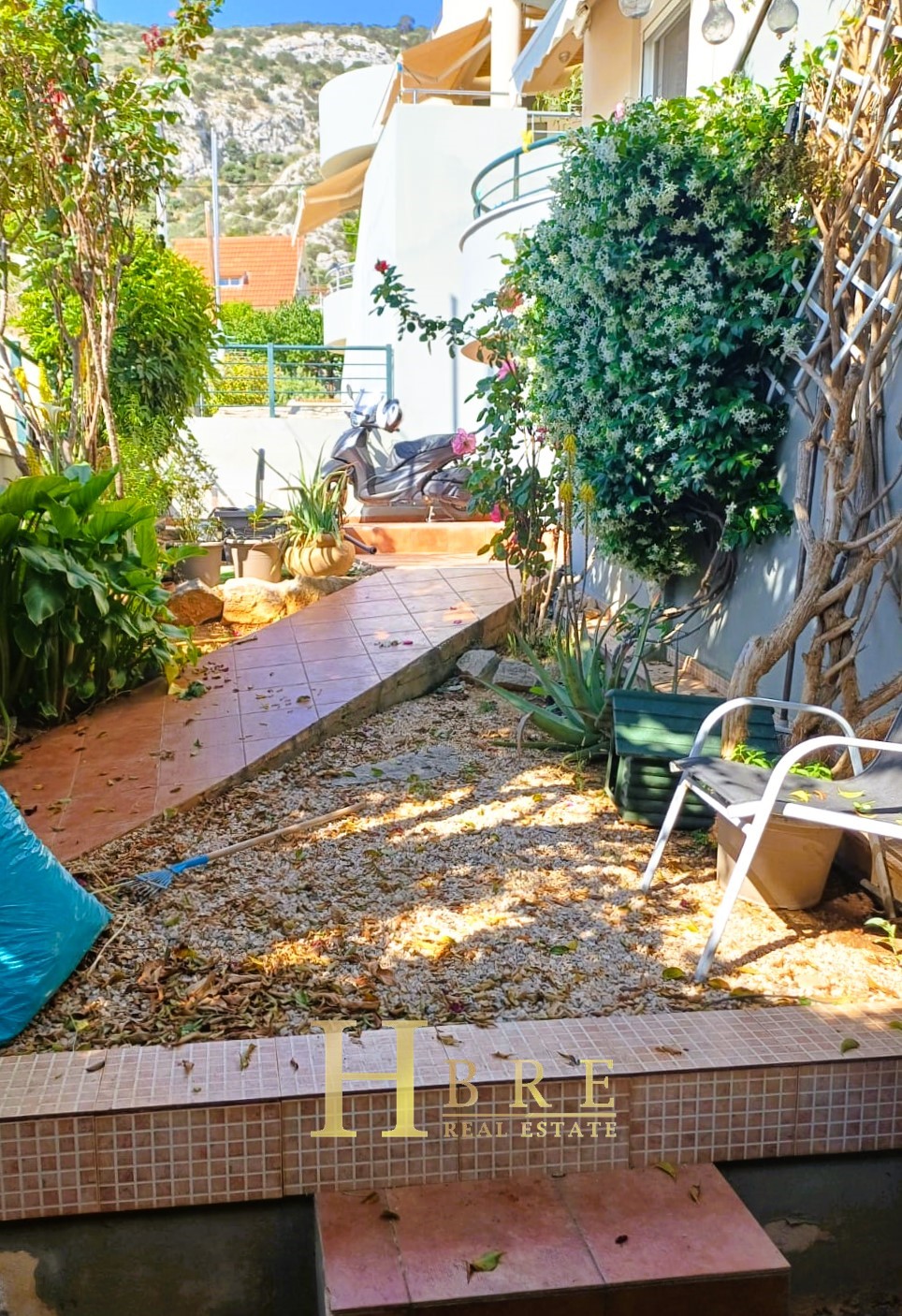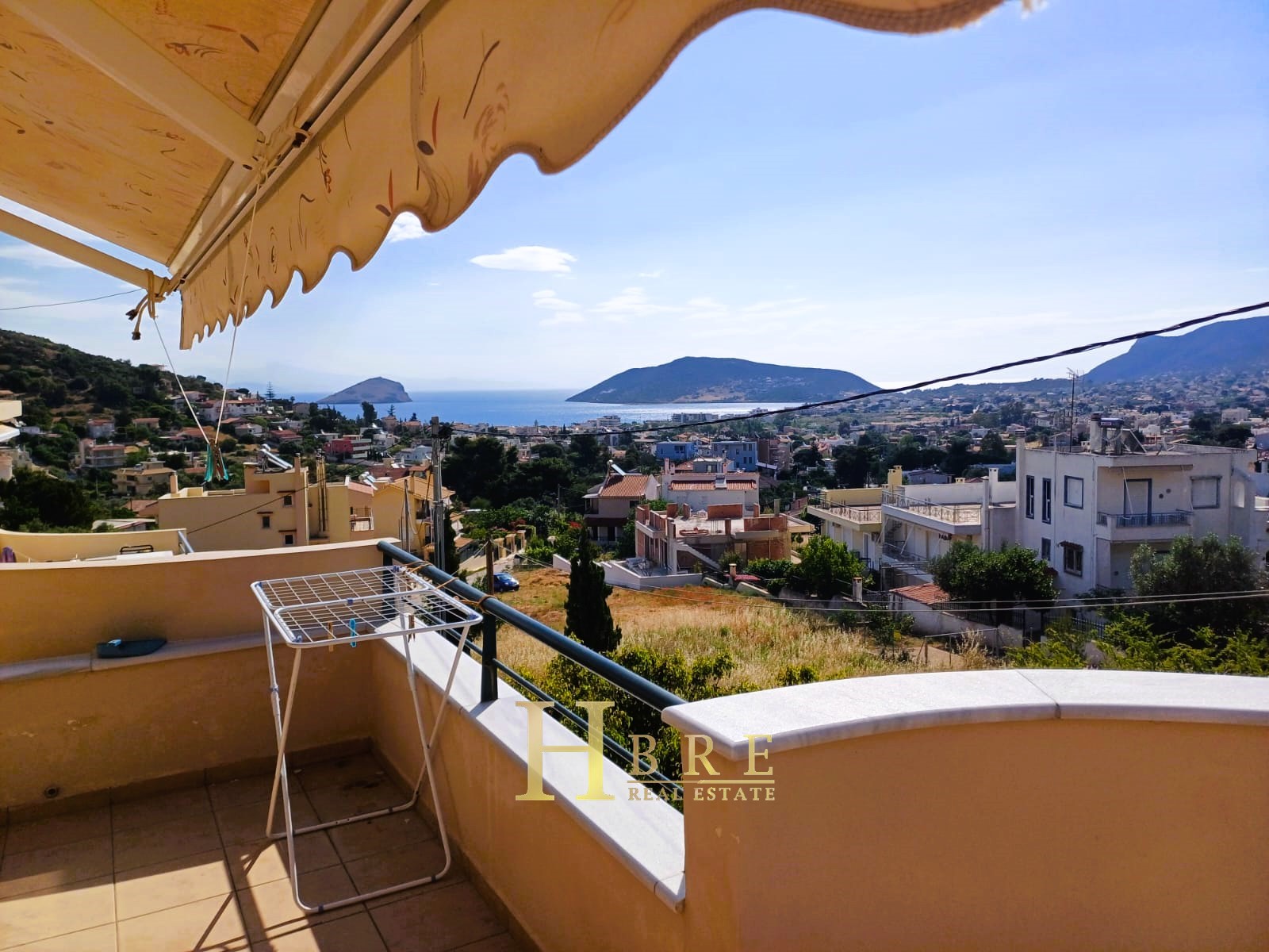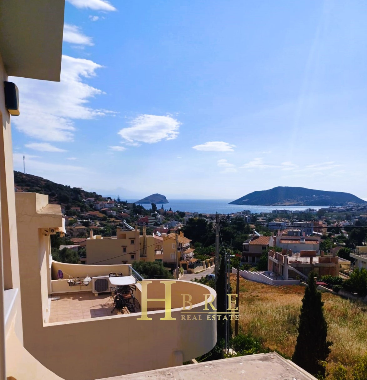 On the raised ground floor there is the living room with fireplace, an open modern kitchen, 1 guest wc and balconies, on the lower level there are 2 spacious bedrooms and 1 bathroom, and on the top level is the attic which is used as a 3rd bedroom, 1 bathroom and is connected to a large terrace and has a sea view.