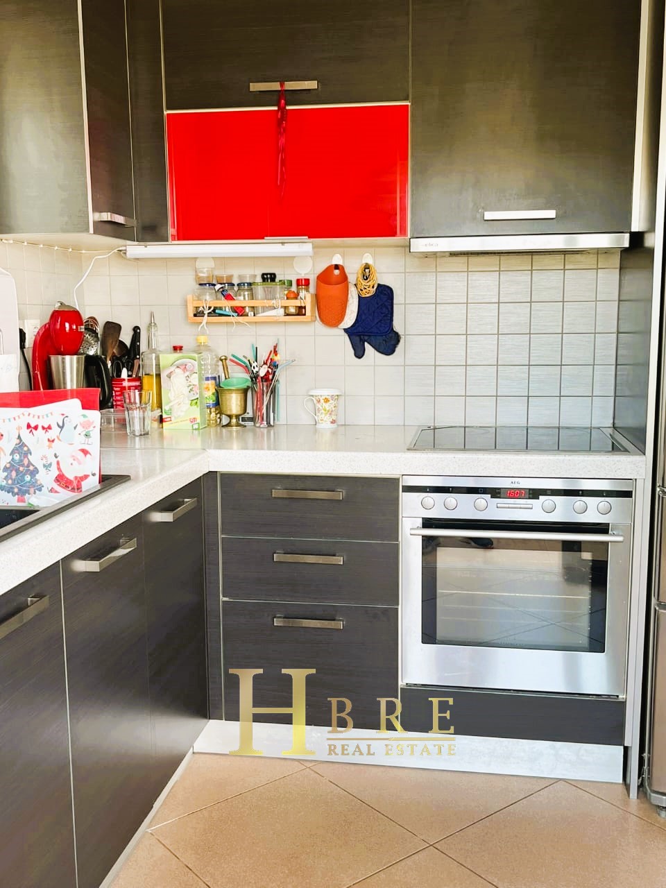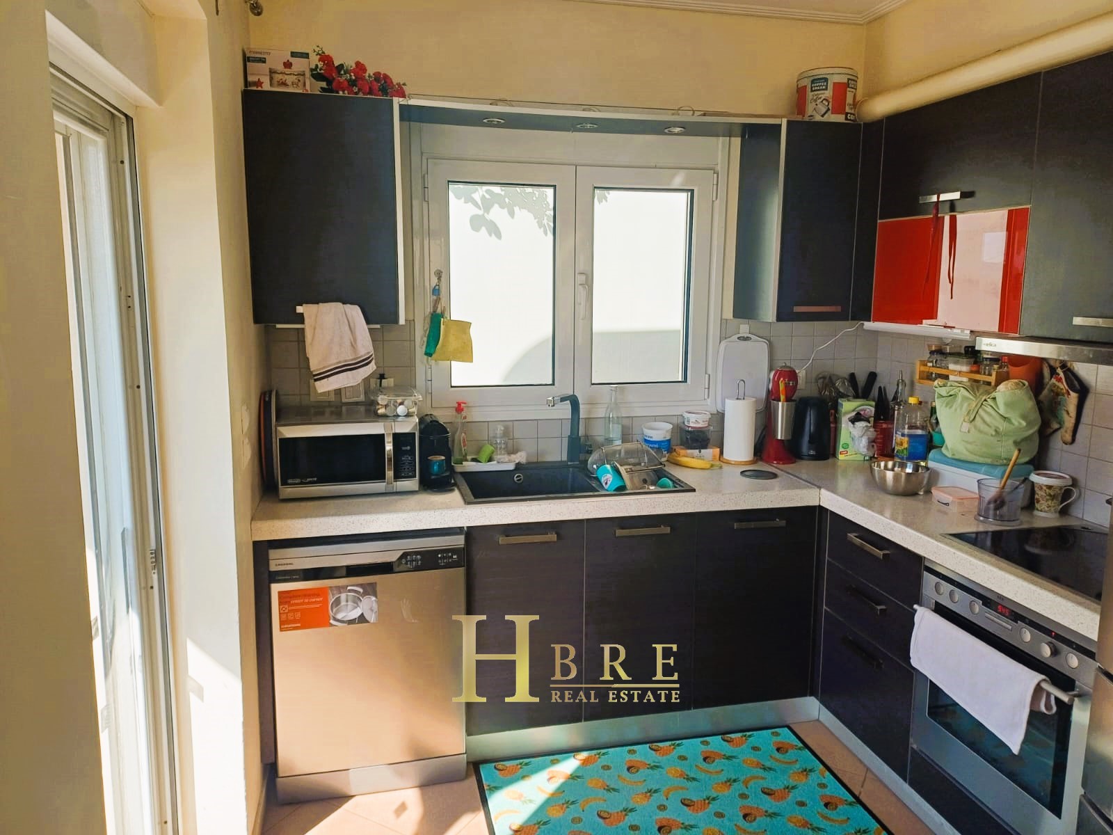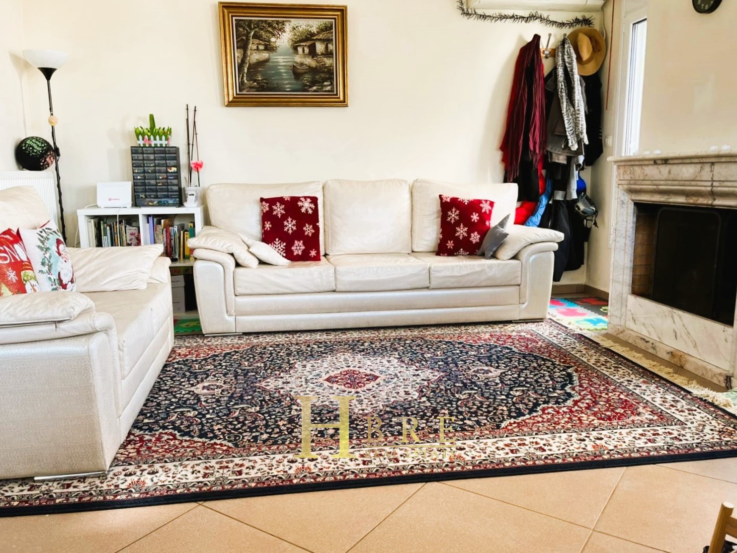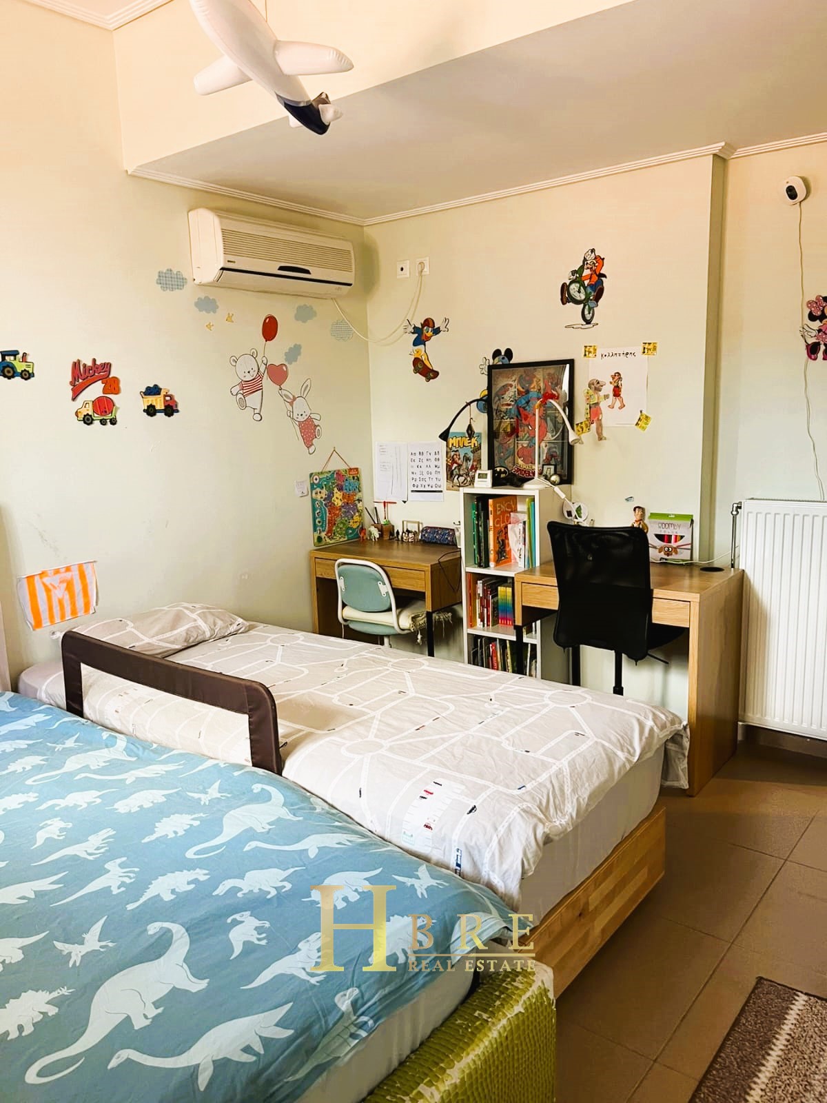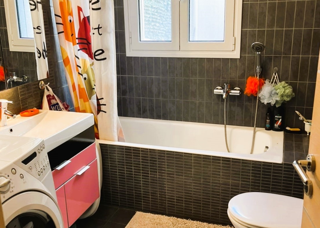 On the raised ground floor there is the living room with fireplace, an open modern kitchen, 1 guest wc and balconies, on the lower level there are 2 spacious bedrooms and 1 bathroom, and on the top level is the attic which is used as a 3rd bedroom, 1 bathroom and is connected to a large terrace and has a sea view.