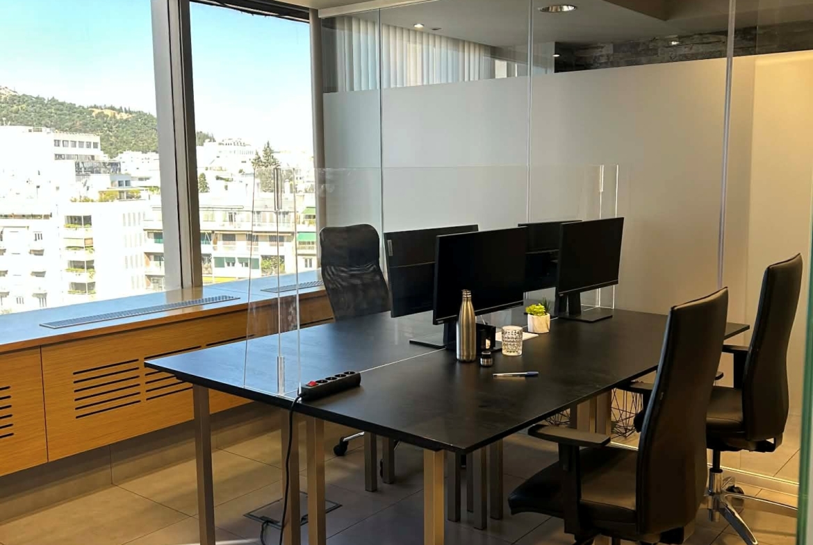 The office stands out for its unobstructed views of Lycabettus Hill and the coastal area of Faliro, offering a prestigious and pleasant working setting.