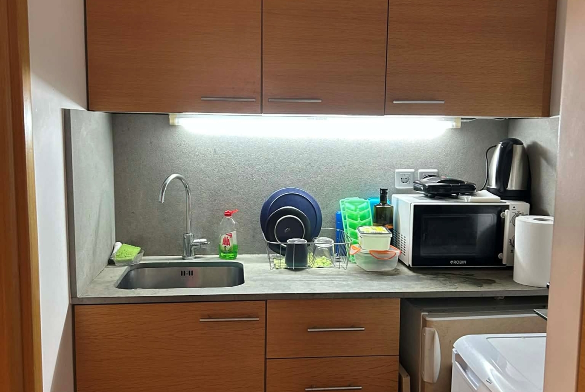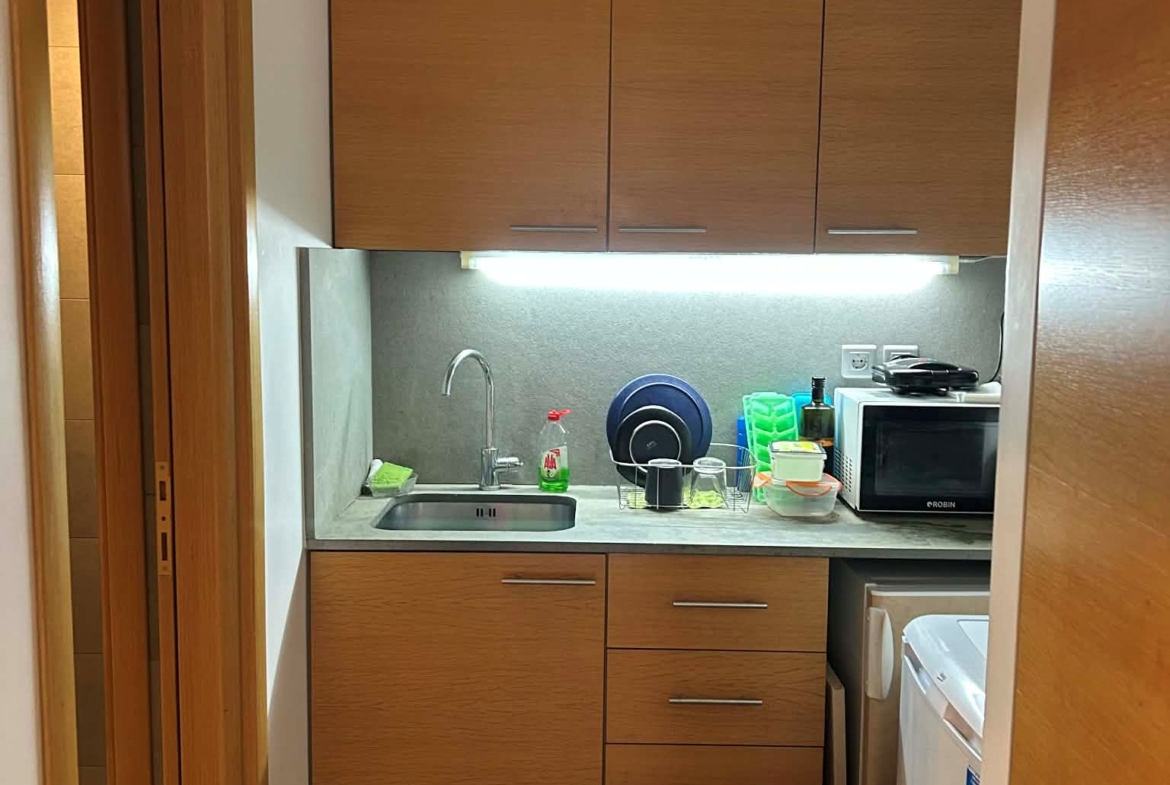It features air conditioning for both cooling and heating, as well as two functional bathrooms. Heating is provided through a central oil system, with common expenses approximately €800 per month.