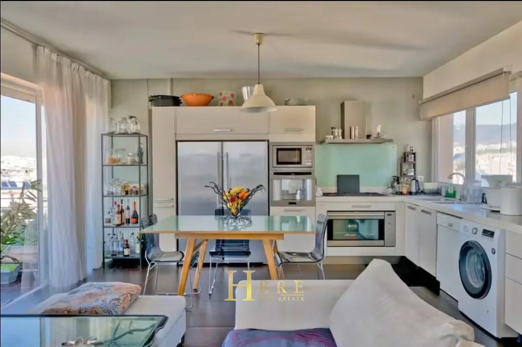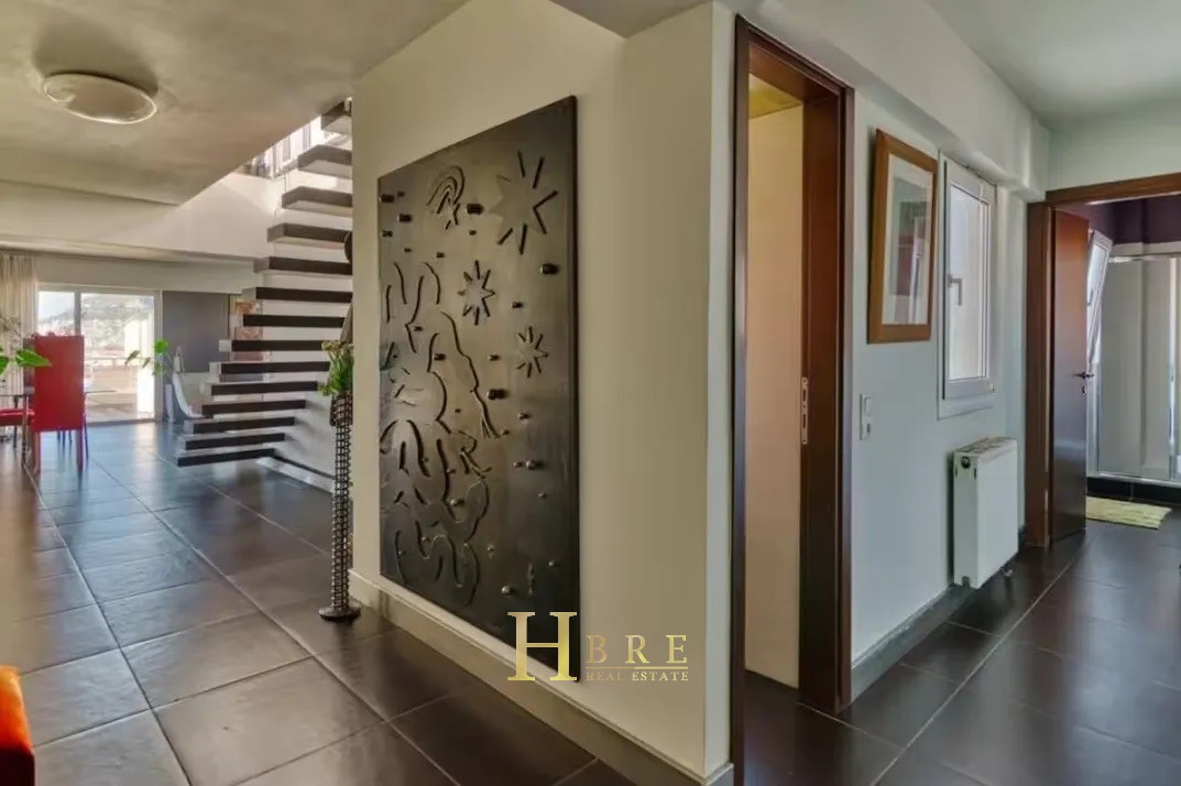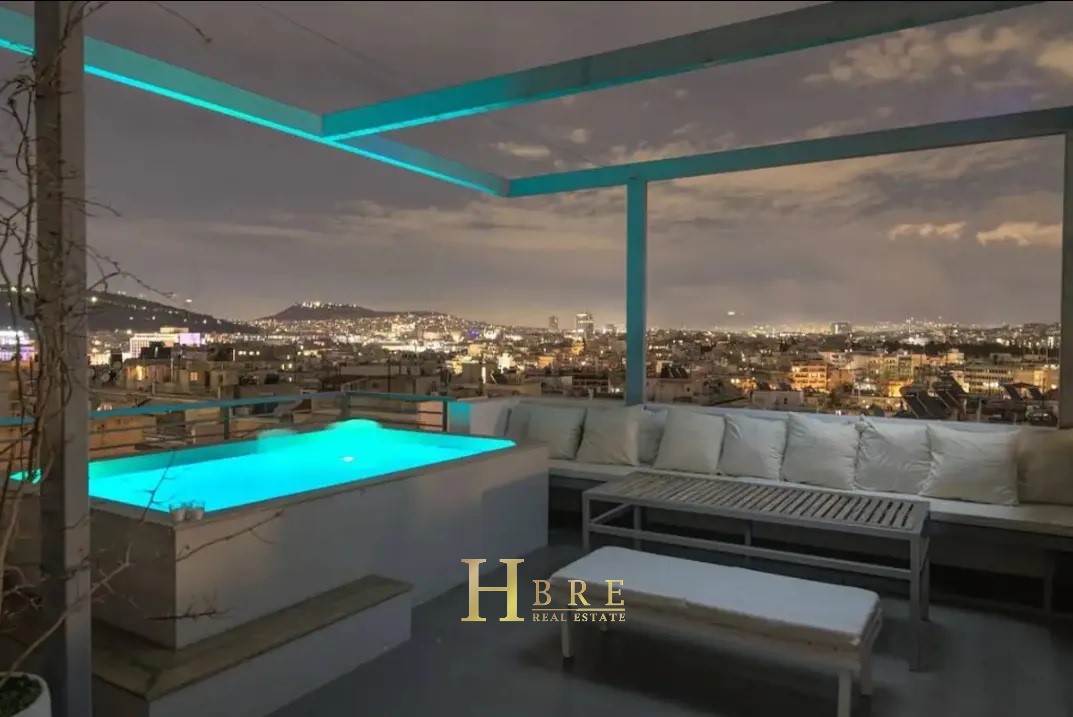 It consists of 2 levels, large terraces with an unobstructed view of the center of Athens, the Acropolis and Lycabettus, and with a private swimming pool, 2 living rooms, a modern kitchen fully equipped, 2 bedrooms and 2 bathrooms and 1 wc, it offers large open spaces and a special architectural character. The property has autonomous natural gas heating, fireplace, air conditioning, solar, security door, elevator, warehouse and parking. Every nook and cranny is designed to offer functionality and style, with cheerful tones and understated, elegant decor that highlights the stunning exterior and interior spaces.