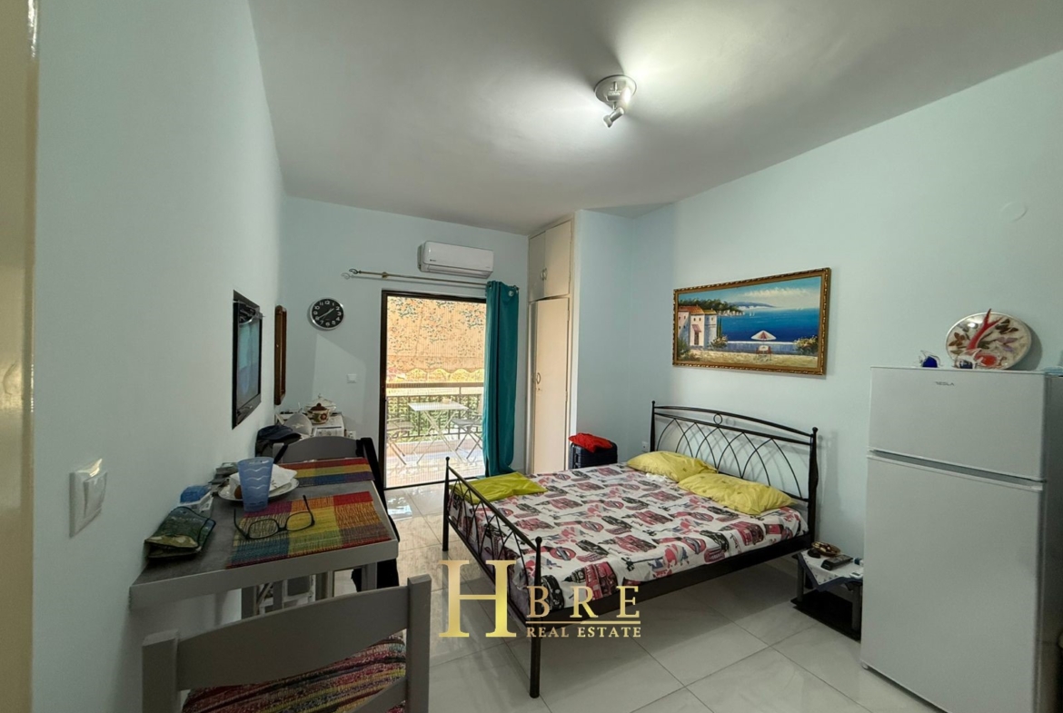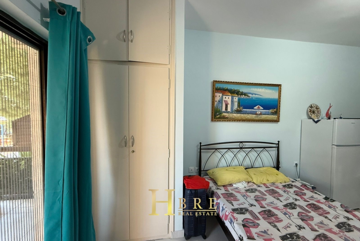 Located in the serene seaside neighborhood of Kanali, on the picturesque island of Poros, this elevated ground-floor studio apartment of 27 sq.m. is just a few meters from the sea and only a 10-minute walk from the island’s vibrant town center.